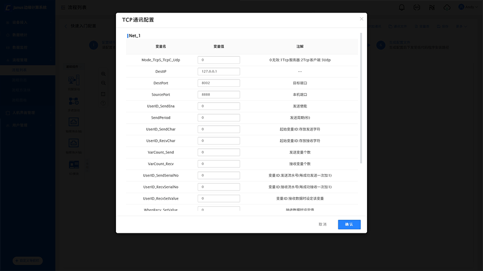 - 当低代码系统使用Tcp协议进行通讯交互时,点击