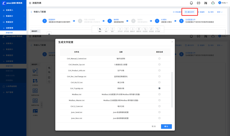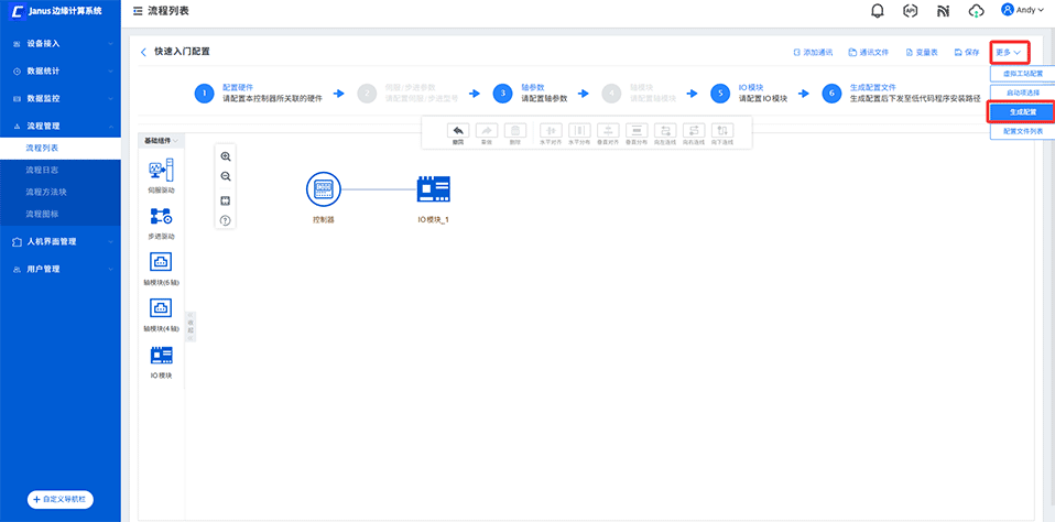 该步骤将预生成硬件配置文件,用于准备向低代码控制系统发送硬件配置文件。
