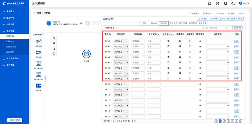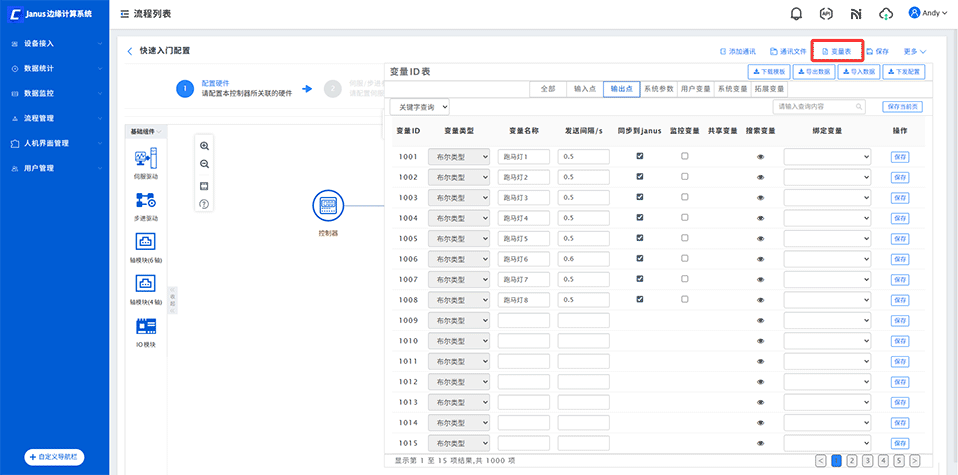 流程监控模块实时观测该变量数据变化; - 共享变量:用于支持多工站系统的变量共享与跨工站调度。