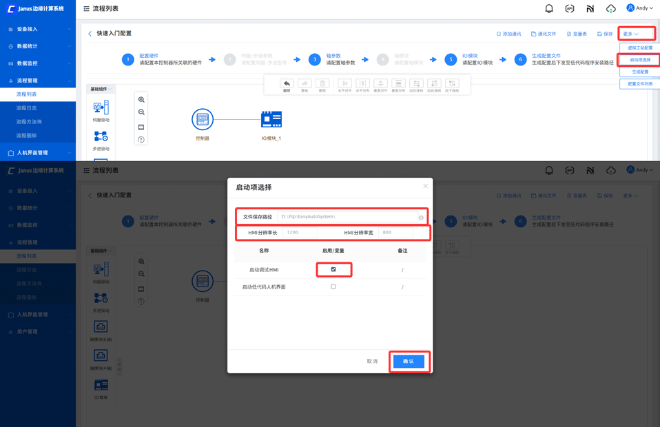 D:\Ftp\EasyAutoSystem\; - 设置低代码HMI分辨率长宽,默认为1200x800,可根据使用需要调整;