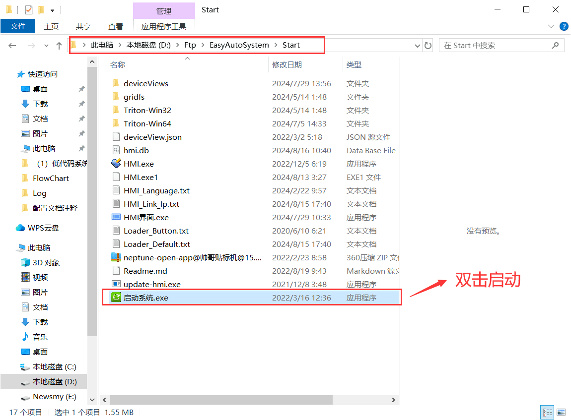 D:\Ftp\EasyAutoSystem\Start,双击打开启动系统.exe。