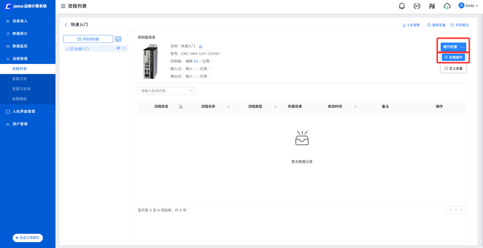硬件配置 → 配置硬件,进入硬件配置界面;