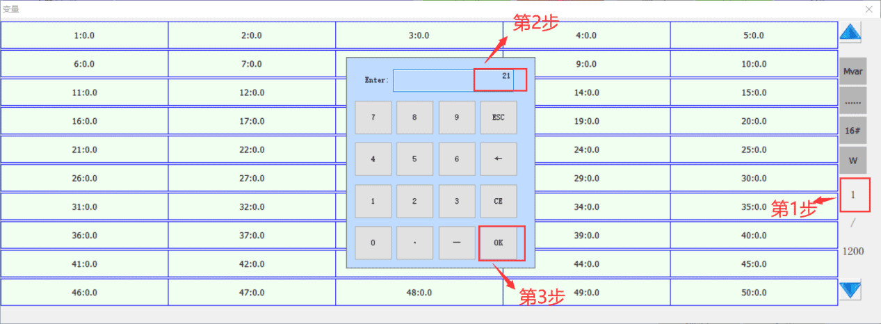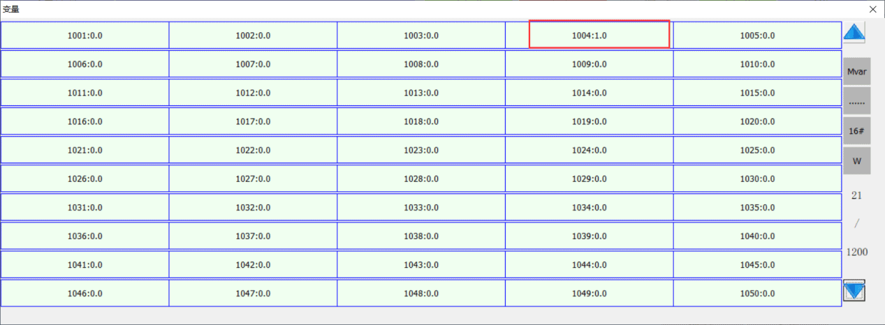 21,点击OK切换至第21页即变量1001-1050的地址页面(每页50个变量)。