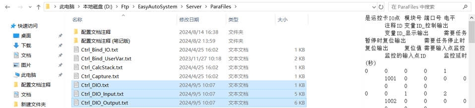IO资源对应的配置文件位于FTP文件夹D:\Ftp\EasyAutoSystem\Server\ParaFiles内,包括: