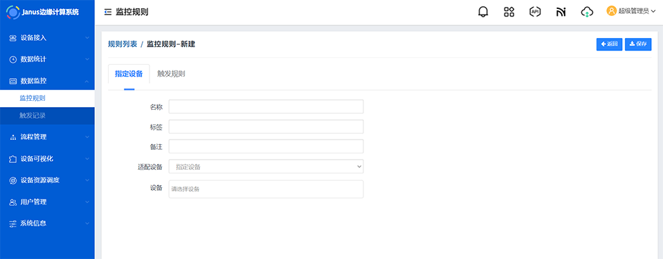 编辑规则基本信息及设备范围,编辑触发规则,完成后点击 保存 完成创建。