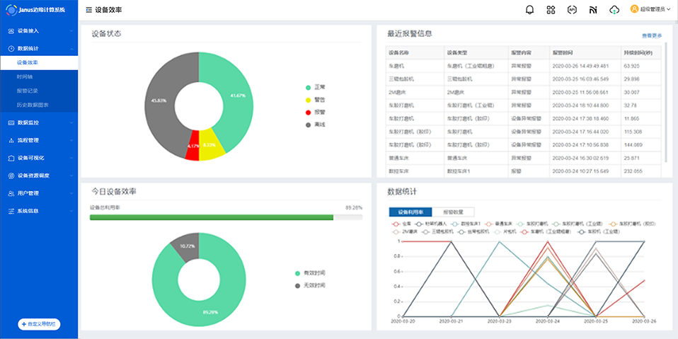 - 设备效率:以图表形式呈现设备整体工作状态;
