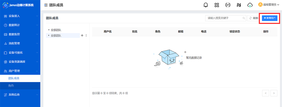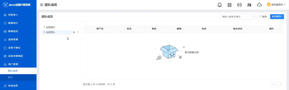 需要添加新的用户时,按照添加角色、团队、用户的顺序,完成用户的新建。