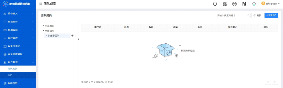 针对用户存在多团队使用场景下,为了将用户和设备更加便捷的管理,在用户管理中增加团队设置。给用户和设备进一步的归属。