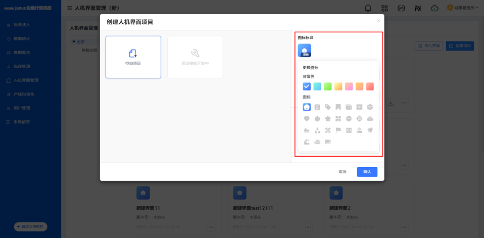 左侧菜单栏导航至人机界面管理(新),点击创建项目。