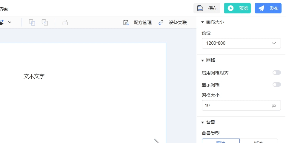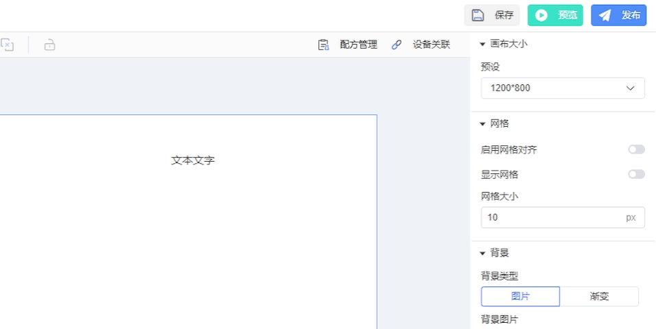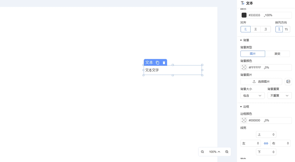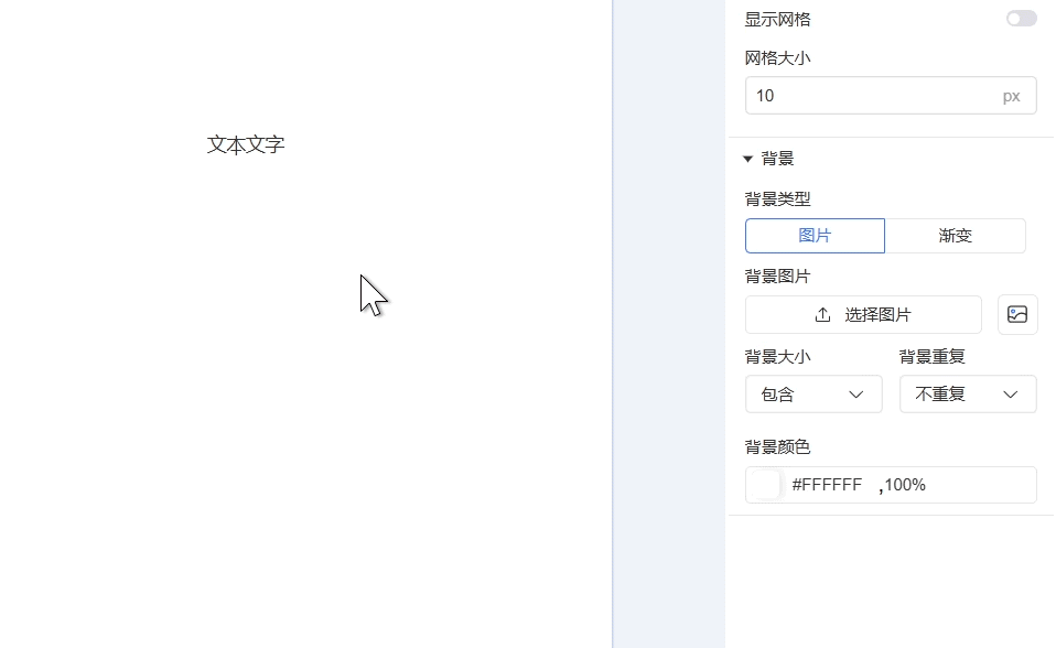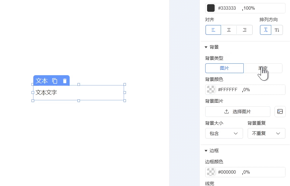 支持设置组件背景为图片或渐变类型(二者不可同时使用),通过颜色选择器可自定义背景颜色。