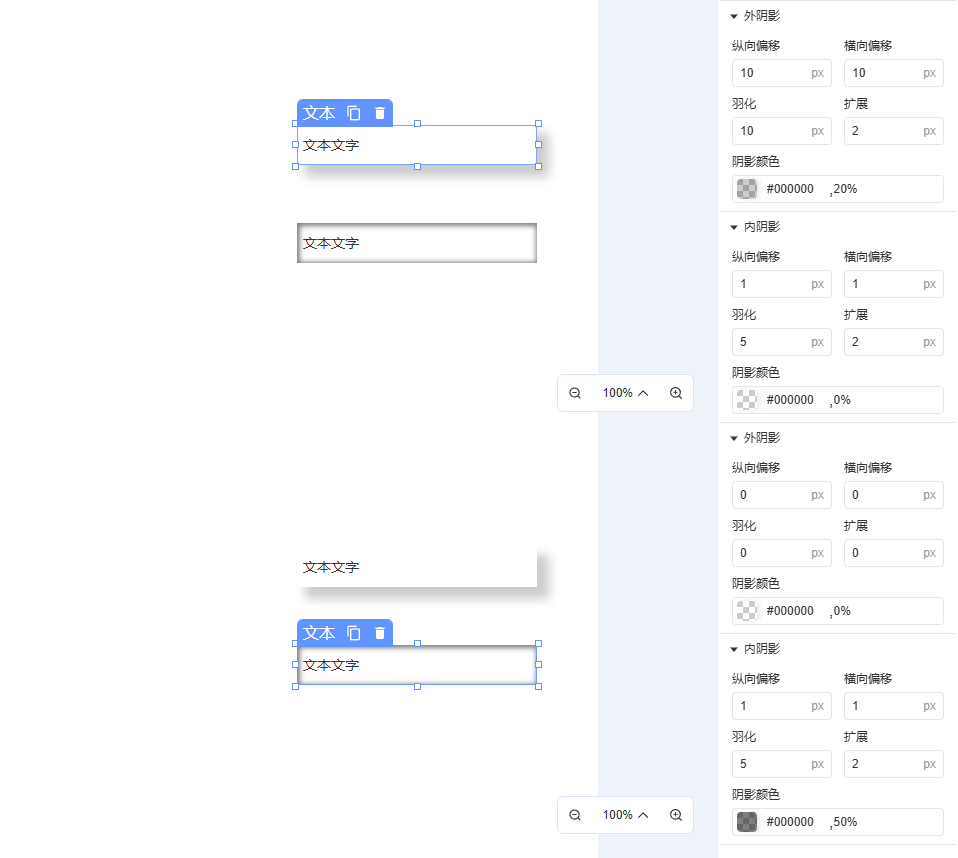 为组件添加阴影,通过调节阴影数值,可控制阴影的模糊度、颜色、位置等。