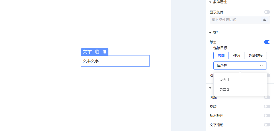 对部分常规组件通过单击/双击实现页面交互。
