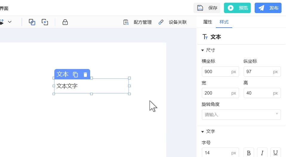每种组件根据不同的组件类型,支持的样式属性也有所不同。以下是组态开发界面中常见的样式设置。