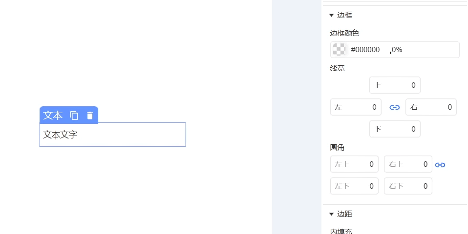 支持调节边框颜色、线宽及圆角,点击线宽/圆角旁的链接图标可切换统一调整或独立设置各边参数。