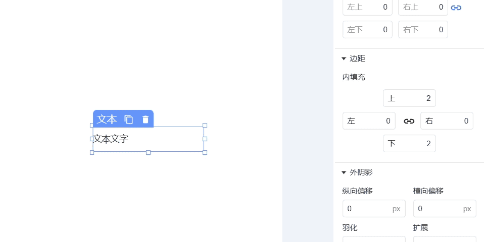 通过调节内填充数值,可控制组件内容(如文本、子组件)与容器边界的间距。