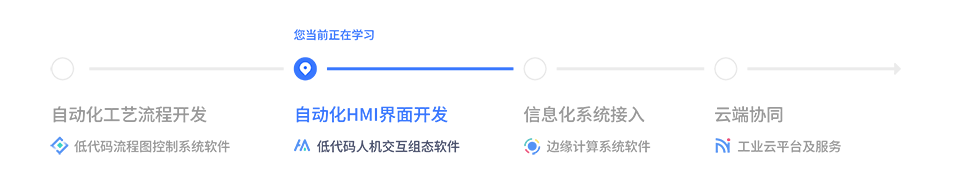 低代码人机交互组态软件快速入门学习地图学习地图在低代码视控云一体开发平台中,低代码人机交互组态软件(HMI组态)是专为低代码流程图控制系统软件设计的人机界面开发工具。若需使用此HMI组态软件,建议先熟悉流程图控制系统的开发流程与基础操作。